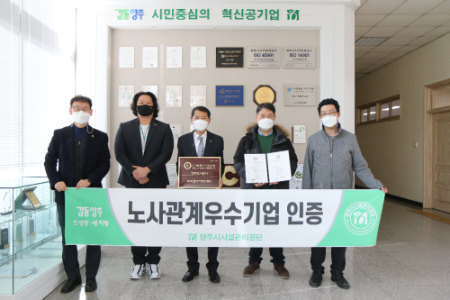 ¾çÁֽýü³°ü¸®°ø´ÜÀº ³ë»ç °£ »ó»ý ¹× Çù·Â¿¡ ´ëÇÑ °ø·Î¸¦ ÀÎÁ¤¹Þ¾Æ Çѱ¹°æ¿µÀÎÁõ¿ø(KMR)À¸·ÎºÎÅÍ ‘³ë»ç°ü°è¿ì¼ö±â¾÷ ÀÎÁõ’À» ȹµæÇß´Ù°í 24ÀÏ ¹àÇû´Ù.