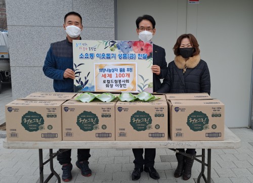 µ¿µÎõ½Ã ¼Ò¿äµ¿ ÇàÁ¤º¹Áö¼¾ÅÍ´Â Áö³ 10ÀÏ ·ÎÄõ帲ºÀ»çȸ¿¡¼ Èñ¸Á³ª´®»óÀÚ ¹°Ç°À¸·Î ¼¼Á¦ 100°³¸¦ Àü´ÞÇß´Ù°í ¹àÇû´Ù.