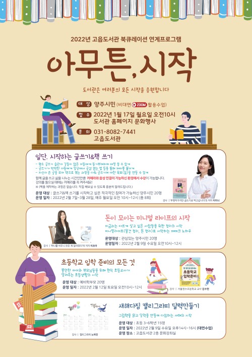 ‘¾Æ¹«Æ°, ½ÃÀÛ’Àº ³²³à³ë¼Ò ±¸ºÐ¾øÀÌ ´Ù¾çÇÑ ¿¬·ÉÃþÀÇ µµ¼°ü ÀÌ¿ëÀÚµéÀÌ µ¶¼È°µ¿¿¡ Èï¹Ì¸¦ °®µµ·Ï À¯µµÇÏ°í µ¶¼¹®È È®»ê¿¡ ±â¿©ÇϰíÀÚ ¸¶·ÃÇÑ µ¶¼ÁøÈï ÇÁ·Î±×·¥ÀÌÀÚ µµ¼Àü½ÃȸÀÌ´Ù.
