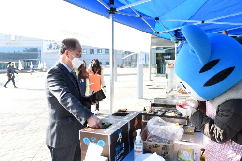 ¼¾ÅÍ´Â Áö³ 20ÀÏ °Ü¿ïö ÇÑÆÄ·Î ¾î·Á¿òÀ» °Þ´Â Áö¿ª ³» Ãë¾à°èÃþ Áö¿øÀ» À§ÇÑ ±â±ÝÀ» ¸¶·ÃÇϱâ À§ÇØ ½Ãû ¾Õ ±¤Àå¿¡ ºØ¾î»§°ú °í±¸¸¶¸¦ ±Á´Â ±â°è¸¦ ¼³Ä¡ÇÏ°í ½Ã¹Î°ú °ø¹«¿øÀ» »ó´ë·Î ÆÇ¸ÅÇß´Ù.