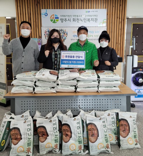 Á÷Àå·°øÀå»õ¸¶À»¿îµ¿¾çÁÖ½ÃÇùÀÇȸ(ȸÀå ¿À¼ö¿µ)´Â 26ÀÏ ¾çÁֽà ȸõ³ëÀκ¹Áö°ü(°üÀå ÁÖ¹ÎÁ¤)¿¡ ÀÌ¿ôµ½±â¸¦ À§ÇÑ ½Ò 200KG¸¦ ±âÁõÇß´Ù.