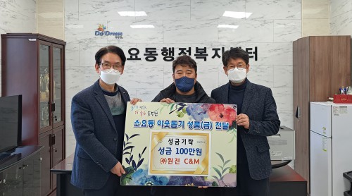 µ¿µÎõ½Ã ¼Ò¿äµ¿ÇàÁ¤º¹Áö¼¾ÅÍ´Â Áö³ 7ÀÏ °ü³» ¼ÒÀç (ÁÖ)¿øÁøC&M¿¡¼ Àú¼ÒµæÃþÀ» À§ÇØ ¼º±Ý 100¸¸¿øÀ» ±âŹÇß´Ù°í ¹àÇû´Ù.