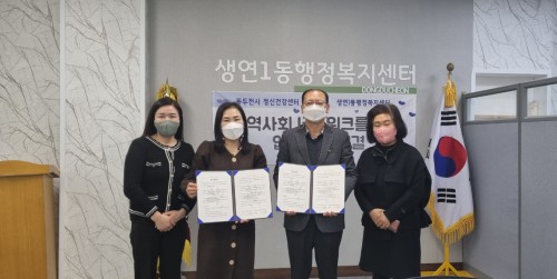 µ¿µÎõ½Ã »ý¿¬1µ¿ ÇàÁ¤º¹Áö¼¾ÅÍ´Â Áö³ 2¿ù 24ÀÏ µ¿µÎõ½ÃÁ¤½Å°Ç°º¹Áö¼¾ÅÍ¿Í °ü³» ÁֹεéÀÇ Á¤½Å°Ç°ÁõÁøÀ» À§ÇÑ ¾÷¹«Çù¾àÀ» ü°áÇß´Ù.