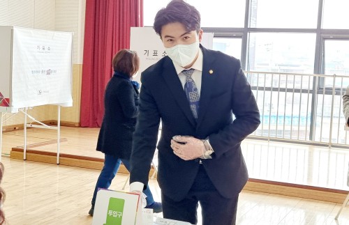 ±¹È¸ ÇàÁ¤¾ÈÀüÀ§¿øÈ¸ ¼Ò¼Ó ´õºÒ¾î¹ÎÁÖ´ç ¿À¿µÈ¯ ÀÇ¿ø(°æ±â ÀÇÁ¤ºÎ½Ã°©)Àº »çÀüÅõÇ¥ ù³¯ÀÎ 4ÀÏ ¿ÀÀü 11½Ã°æ ÀÇÁ¤ºÎ½Ã Èï¼±µ¿ÇàÁ¤º¹Áö¼¾ÅÍ¿¡ ¼³Ä¡µÈ »çÀüÅõÇ¥¼Ò¿¡¼ µµ‧½ÃÀÇ¿ø ¹× ´çÁ÷ÀÚµé°ú ÇÔ²² »çÀüÅõÇ¥¸¦ ¸¶ÃÆ´Ù.