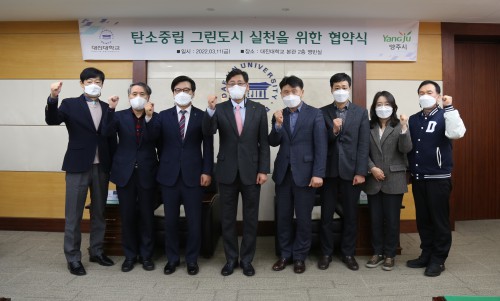 ½Ã °ü°èÀÚ´Â “Á¤ºÎÀÇ 2050 ´ëÇѹα¹ ź¼ÒÁ߸³ ¼±¾ð°ú ±×¸°´ºµô ÃßÁø Á¤Ã¥¿¡ ¹ß¸ÂÃç ÇàÁ¤°ú ±³À°ÀÇ ÃÖÀϼ±¿¡ ÀÖ´Â ¾çÁÖ½Ã¿Í Áö¿ª´ëÇÐÀÌ ¼±µµÀû ¿ªÇÒÀ» ¼öÇàÇÏ°Ô µÉ °Í”À̶ó¸ç “Ȱ¹ßÇÑ »óÈ£Çù·ÂÀ» ÅëÇØ Áö¼Ó°¡´ÉÇÑ ¹ßÀü°ú ȯ°æ °ü·Ã ¿ì¼öÀÎÀç À°¼º¿¡ ±â¿©ÇÔÀ¸·Î½á Áö¿ª Çõ½Å ¼ºÀåÀÇ °ÅÁ¡ ¿ªÇÒÀ» ¼öÇàÇØ ³ª°¡°Ú´Ù”°í ¸»Çß´Ù.