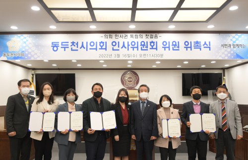 µ¿µÎõ½ÃÀÇȸ(ÀÇÀå Á¤¹®¿µ)´Â Áö³ 16ÀÏ ÀÇȸ º»È¸ÀÇÀå¿¡¼ ‘µ¿µÎõ½ÃÀÇȸ ÀλçÀ§¿øÈ¸ À§¿ø À§Ã˽ĒÀ» °³ÃÖÇϰí, 5¸íÀÇ À§ÃËÁ÷ À§¿øµé¿¡°Ô À§ÃËÀåÀ» Àü´ÞÇß´Ù.