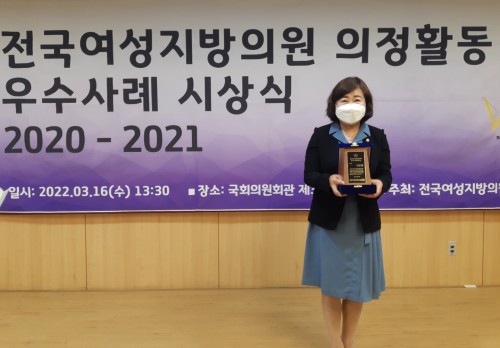 ÀÇÁ¤ºÎ½ÃÀÇȸ À̰è¿Á ÀÇ¿øÀº Áö³ 16ÀÏ ±¹È¸ÀÇ¿øÈ¸°ü¿¡¼ °³ÃÖÇÑ Àü±¹¿©¼ºÁö¹æÀÇ¿ø³×Æ®¿öÅ© ÁÖ°ü '2022 Àü±¹¿©¼ºÁö¹æÀÇ¿ø³×Æ®¿öÅ© ÀÇÁ¤È°µ¿ ¿ì¼ö»ç·Ê ½Ã»ó½Ä'¿¡¼ ±âÃÊÀÇȸ ºÐ¾ß ¿ì¼ö»óÀ» ¹Þ¾Ò´Ù.