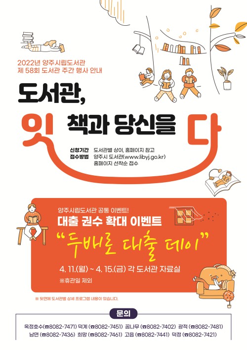 ¾çÁֽô ¿À´Â 4¿ù Á¦58ȸ µµ¼°ü ÁÖ°£À» ¸Â¾Æ ‘µµ¼°ü, Ã¥°ú ´ç½ÅÀ» ÀÕ´Ù’´Â ÁÖÁ¦·Î ÀÛ°¡ ÃÊû, Àι®ÇÐ °¿¬, üÇèÇà»ç, Àü½Ã µî ´Ùä·Î¿î µ¶¼¹®È Çà»ç¸¦ ¿î¿µÇÑ´Ù.