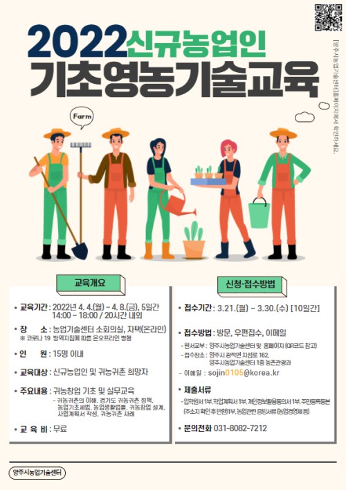 ¾çÁÖ½Ã(½ÃÀå À̼ºÈ£)´Â ¿À´Â 30ÀϱîÁö ‘2022³â ½Å±Ô³ó¾÷ÀÎ ±âÃÊ¿µ³ó ±â¼ú±³À°’ ±³À°»ýÀ» ¸ðÁýÇÑ´Ù.