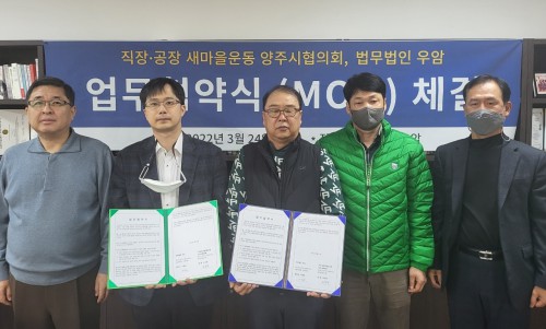 Á÷Àå·°øÀå»õ¸¶À»¿îµ¿¾çÁÖ½ÃÇùÀÇȸ(ȸÀå ¿À¼ö¿µ)´Â Áö³ 24ÀÏ ¹ý¹«¹ýÀÎ ¿ì¾Ï ¾çÁֺмÒ(´ö°èµ¿ ¼ÒÀç)¿Í ¹ý¹« °ü·Ã »ó´ãÀ» À§ÇÏ¿© ¾÷¹«Çù¾àÀ» ü°áÇÏ¿´´Ù.