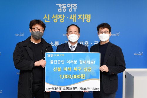 (»ç)Çѱ¹¿¹ÃÑ ¾çÁÖÁöȸ(ȸÀå ±è¿µÈ¯)´Â Áö³ 28ÀÏ °¿ø°ú °æºÏÁö¿ª »êºÒ·Î ¾î·Á¿òÀ» °Þ°í ÀÖ´Â ÀÌÀç¹ÎÀ» À§ÇØ ¼º±Ý 1¹é¸¸¿øÀ» °æ±â»çȸº¹Áö°øµ¿¸ð±Ýȸ¿¡ ±âŹÇß´Ù.