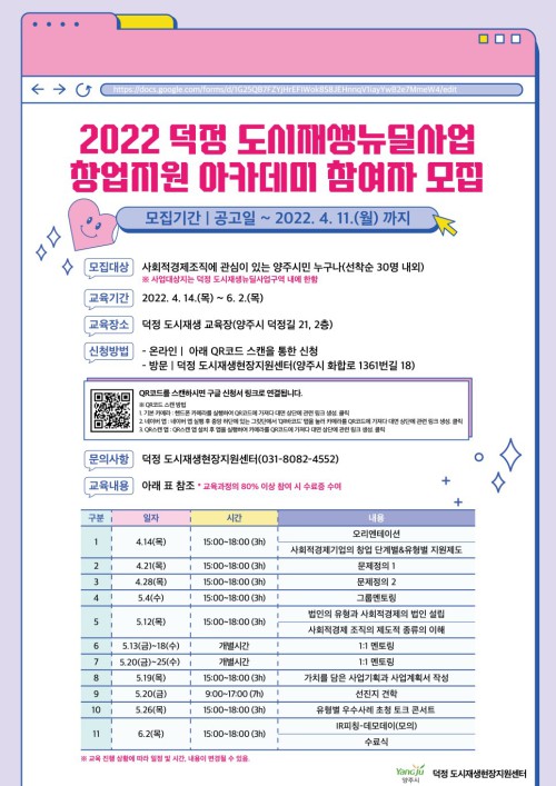 ¾çÁֽà ´öÁ¤ µµ½ÃÀç»ýÇöÀåÁö¿ø¼¾ÅÍ´Â ¿À´Â 11ÀϱîÁö ‘´öÁ¤ µµ½ÃÀç»ý´ºµô»ç¾÷ â¾÷Áö¿ø ¾ÆÄ«µ¥¹Ì’¿¡ Âü¿©ÇÒ ½Ã¹ÎÀ» ¸ðÁýÇÑ´Ù.