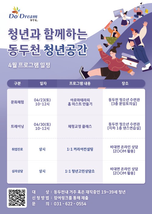 ´ë¸éÇÁ·Î±×·¥Àº ¸ÅÁÖ Åä¿äÀϸ¶´Ù ¿î¿µµÇ¸ç, 19¼¼∼39¼¼ µ¿µÎõ °ÅÁÖ Ã»³âÀÌ¸é ´©±¸³ª ½ÅûÀÌ °¡´ÉÇÏ´Ù. ÀÚ¼¼ÇÑ ÀÏÁ¤°ú ½Åû¹æ¹ýÀº µ¿µÎõ ¾î¼öÁ¤ û³â°ø°£ ³×À̹öºí·Î±×(blog.naver.com/ddc_youth)¸¦ ÅëÇØ È®ÀÎÇÒ ¼ö ÀÖ´Ù.