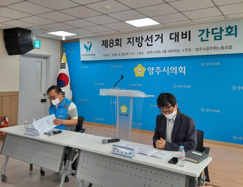 ¾çÁֽðø¹«¿ø³ëµ¿Á¶ÇÕ(À§¿øÀå ±èµ¿Èñ, ÀÌÇÏ ¾ç°ø³ë)Àº Áö³ 28ÀÏ ¿ÀÀü 10½Ã ½ÃÀÇȸ ´ëȸÀǽǿ¡¼ ¾çÁֽü±°Å°ü¸®À§¿øÈ¸¿Í À¾¸éµ¿¼±°Å°ü¸®À§¿øÈ¸ °£»ç¿Í °£´ãȸ¸¦ °®°í ¿À´Â 6¿ù °³ÃֵǴ Àü±¹µ¿½ÃÁö¹æ¼±°Å¿Í °ü·ÃÇÏ¿© À¾¸éµ¿¼±°Å°ü¸®À§¿øÈ¸ÀÇ ¾Ö·Î»çÇ×°ú ¹®Á¦Á¡ µî ó¿ì°³¼±À» À§ÇØ °øµ¿ ´ëÀÀÁöħÀ» ÇùÀÇÇϰí Á¦µµ°³¼±À» Ã˱¸Çß´Ù.