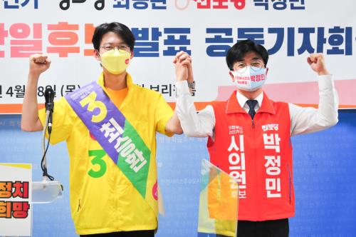 ÀÇÁ¤ºÎ½ÃÀÇ¿ø ´Ù¼±°Å±¸(½Å°î1~2µ¿, Àå¾Ïµ¿, Àڱݵ¿) ÃÖ½Âȯ Á¤ÀÇ´ç Èĺ¸¿Í ¶ó¼±°Å±¸(¼Û»ê1~3µ¿) ¹ÚÁ¤¹Î Áøº¸´ç È帴 4¿ù28ÀÏ º»ÀεéÀÌ Áøº¸ 4´ç(Áøº¸´ç, Á¤ÀÇ´ç, ³ëµ¿´ç, ³ì»ö´ç)ÀÌ ÇÕÀÇÇÑ ‘Áøº¸´ÜÀÏÈ帒¶ó°í ¹àÇû´Ù.