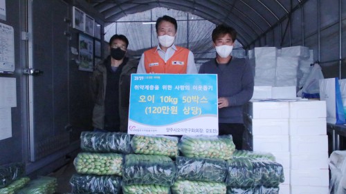 (»ç)¾çÁÖ½ÃÀÚ¿øºÀ»ç¼¾ÅÍ(¼¾ÅÍÀå ±è¿ëÈÆ)´Â Áö³ 2ÀÏ ¾çÁֽÿÀÀÌ¿¬±¸È¸(ȸÀå °µµÁø)¿¡¼ ‘¿ÀÀ̵¥ÀÌ’¸¦ ¸Â¾Æ °ü³» ¾î·Á¿î ÀÌ¿ôÀ» À§ÇØ ¿ÀÀÌ(10kg) 50¹Ú½º¸¦ Àü´ÞÇß´Ù°í ¹àÇû´Ù.