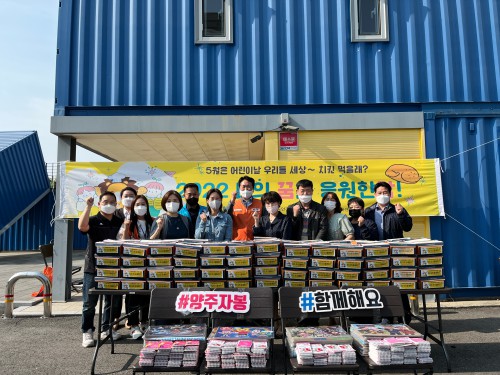 À̹ø Ȱµ¿Àº Áö³ 2³â°£ Äڷγª19·Î ¾î·Á¿î Àú¼Òµæ °¡Á¤À» À§ÇØ °¨µ¿ º¸µû¸®(»ýÇÊǰ ¹Ú½º)¸¦ Á¦ÀÛÇÏ¿© Àü´ÞÇÏ¿´´ø Çà»ç¸¦ »çȸÀû °Å¸®µÎ±â ÇØÁ¦·Î ÀÎÇØ ±âȹµÆÀ¸¸ç, ¾î¸°À̳¯À» ¸Â¾Æ °ü³» ¾Æµ¿µé¿¡°Ô ¸ÀÀÖ´Â À½½ÄÀ» Àü´ÞÇØ ÁÖ±â À§ÇØ ¢ß°í·ÁÁø°ø¾ÈÀü¿¡¼ Àü±âÅë´ß±¸ÀÌ 1,000¸¶¸®¸¦ ÈÄ¿øÇß°í ¾çÁÖ¹«Áö°³ºÀ»çȸ 10¿©¸í°ú ÇÔ²² °ü³» Áö¿ª¾Æµ¿¼¾ÅÍ, µå¸²½ºÅ¸Æ® µî ¾Æµ¿½Ã¼³ 27°³¼Ò¿¡ Á¤¼º½º·´°Ô Æ÷ÀåÇØ Àü´ÞÇß´Ù.