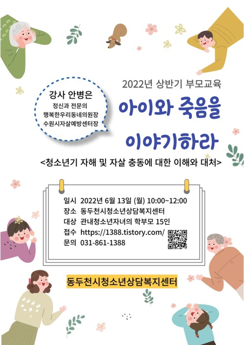 µ¿µÎõ½Ãû¼Ò³â»ó´ãº¹Áö¼¾ÅÍ(¼¾ÅÍÀå Ȳ»ó¿¬)´Â ¿À´Â 6¿ù 13ÀÏ ‘¾ÆÀÌ¿Í Á×À½À» À̾߱âÇ϶ó’¶ó´Â ÁÖÁ¦·Î »ó¹Ý±â ºÎ¸ð±³À°À» ÁøÇàÇÑ´Ù.
