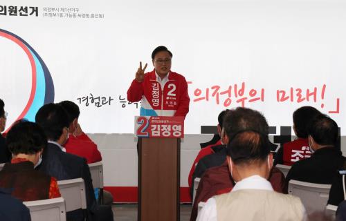 ±èÁ¤¿µ ±¹¹ÎÀÇÈû °æ±âµµÀÇ¿ø ÀÇÁ¤ºÎ½Ã Á¦1¼±°Å±¸(ÀÇÁ¤ºÎ1·3µ¿, °¡´Éµ¿, Èï¼±µ¿, ³ì¾çµ¿) È帴 5¿ù7ÀÏ ¼±°Å»ç¹«¼Ò °³¼Ò½ÄÀ» ¿°í ÀçµµÀüÀ» °ø½Ä ¼±¾ðÇß´Ù.