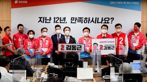 ÀÇÁ¤ºÎ½ÃÀå¿¡ µµÀüÇß´Ù°¡ °æ¼±¿¡¼ Áø ±¸±¸È¸ ÀÇÁ¤ºÎ½ÃÀÇ¿øÀÌ 5¿ù13ÀÏ ±èµ¿±Ù ±¹¹ÎÀÇÈû Èĺ¸¿¡ ´ëÇÑ ÁöÁö¸¦ ¼±¾ðÇß´Ù.