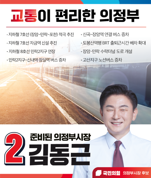 ±èµ¿±Ù È帴 öµµ¸Á È®Àå, ¹ö½º ÁõÂ÷ ¹× ½Å±Ô³ë¼± Ãß°¡¿Í µµ·Î È®Àå»ç¾÷À» ÅëÇØ <±³ÅëÀÌ Æí¸®ÇÑ ÀÇÁ¤ºÎ>¸¦ ¸¸µé°Ú´Ù°í ¹àÇû´Ù. À̸¦ À§ÇÑ ¼¼ºÎ °ø¾àÀ¸·Î ¡âÁöÇÏö 7È£¼±(Àå¾Ï~¹Î¶ô~Æ÷õ) Àû±Ø ÃßÁø ¡âÁöÇÏö 8È£¼± ¹Î¶ô2Áö±¸ ¿¬Àå ¡âÁöÇÏö 7È£¼± Àڱݿª ½Å¼³ ÃßÁø ¡âGTX-C³ë¼± Á¶±â Âø°ø ¡â¹Î¶ô-ž¼®¿ª-°í»ê ¼øÈ¯Æ®·¥ ¼³Ä¡ ¡â±³¿Ü¼±(ÀÇÁ¤ºÎ~¾çÁÖ~°í¾ç) Àç°³Åë ¹× ±³¿Ü¼± °¡´É¿ª ½Å¼³ ÃßÁø ¡â½Å°î~Àå¾Ï¿ª ¿¬°á ¹ö½º ÁõÂ÷ µîÀ» ¹ßÇ¥Çß´Ù. ±èµ¿±Ù È帴 “µ¿¼³²ºÏ ¾îµðµç ½±°í ºü¸£°Ô ¿¬°áµÇ´Â »çÅëÆÈ´Þ ±³ÅëÁ߽ɵµ½Ã ÀÇÁ¤ºÎ¸¦ ¸¸µé°Ú´Ù.”´Â Æ÷ºÎ¸¦ ¹àÇû´Ù.