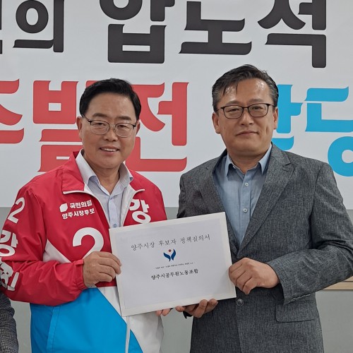 ¾çÁֽðø¹«¿ø³ëµ¿Á¶ÇÕ(À§¿øÀå ±èµ¿Èñ, ÀÌÇÏ ¾ç°ø³ë)Àº 18ÀÏ ±¤ÁÖ¹ÎÁßÇ×Àï ±â³äÀÏÀ» ¸ÂÀÌÇÏ¿© »çÀü¿¡ ±¤ÁÖ 5·18 ±¹¸³¹¦Áö Âü¹è ¹× Çåȸ¦ ½Ç½ÃÇÏ°í ¹ÎÁÖÈÁ¤½ÅÀ» À̾î¹Þ¾Æ ¾çÁÖ½ÃÀÇ ÀλçÀûÆó¸¦ °³ÇõÇϰíÀÚ 5¿ù 18ÀÏ Á¦8ȸ Àü±¹µ¿½ÃÁö¹æ¼±°Å ¾çÁÖ½ÃÀå Èĺ¸ÀÚ·Î ÀÔÈĺ¸ÇÑ 3¸íÀÇ Èĺ¸ÀÚ Ä·ÇÁ¸¦ ¹æ¹®ÇÏ¿© Á÷Á¢ ¾çÁÖ½ÃÀå Èĺ¸µé¿¡°Ô Á¤Ã¥ÁúÀǼ¸¦ Àü´ÞÇß´Ù°í ¹àÇû´Ù.