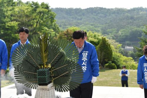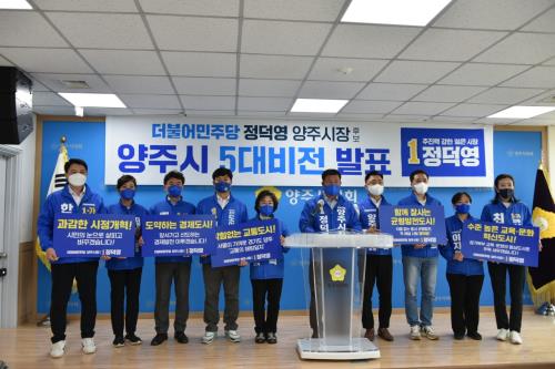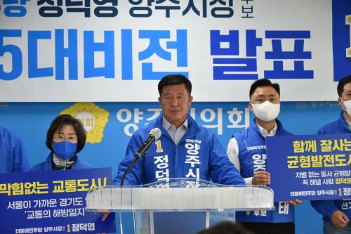 Á¤´ö¿µ ´õºÒ¾î¹ÎÁÖ´ç ¾çÁÖ½ÃÀå È帴 5¿ù19ÀÏ ¾çÁÖ½ÃÀÇȸ¿¡¼ ‘¾çÁÖ ´ëº¯Çõ·´ëÀüȯÀ» À§ÇÑ 5´ë ºñÀü °ø¾à ¹ßÇ¥’ ±âÀÚȸ°ßÀ¸·Î °ø½Ä ¼±°Å¿îµ¿À» ½ÃÀÛÇß´Ù.