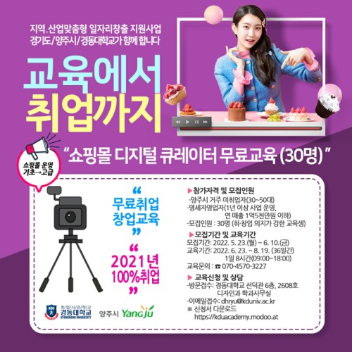 ¾çÁÖ½Ã(¾çÁÖ½ÃÀå ±ÇÇÑ´ëÇà ±èÁ¾¼®)´Â ¿À´Â 23ÀϺÎÅÍ 6¿ù 10ÀϱîÁö ‘¼îÇθô µðÁöÅРť·¹ÀÌÅÍ ¾ç¼º°úÁ¤’ ±³À°»ý 30¸íÀ» ¸ðÁýÇÑ´Ù.