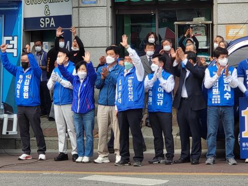 ÃÖ¿ë´ö ´õºÒ¾î¹ÎÁÖ´ç µ¿µÎõ½ÃÀå Èĺ¸¿Í ÀÌÀαÔ(Á¦1¼±°Å±¸), ±èµ¿Ã¶(Á¦2¼±°Å±¸) µµÀÇ¿ø Èĺ¸, ±èÀç¼ö·±èµ¿¿ø(°¡¼±°Å±¸), ÀÓÇö¼÷·¹ÚÀιü(³ª¼±°Å±¸), ÀÌÀ¯È(ºñ·Ê´ëÇ¥) ½ÃÀÇ¿ø È帴 5¿ù20ÀÏ ¿ÀÈÄ 4½Ã Å«½ÃÀå ·ÎÅ͸®¿¡¼ 6.1 Áö¹æ¼±°Å 2Â÷ ÃâÁ¤½ÄÀ» °®°í ¾Ð½ÂÀ» ´ÙÁüÇß´Ù.