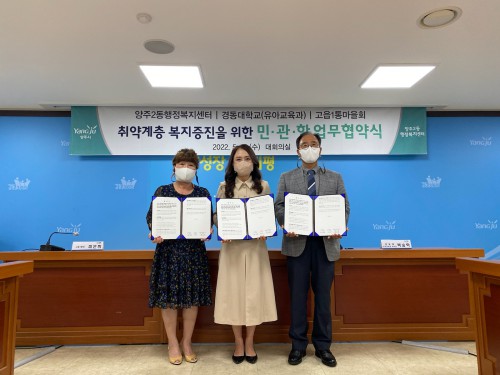 ¾çÁֽà ¾çÁÖ2µ¿ ÇàÁ¤º¹Áö¼¾ÅÍ(µ¿Àå ¼Û¹Ì¾Ö)´Â Áö³ 18ÀÏ °æµ¿´ëÇб³ À¯¾Æ±³À°°ú, °íÀ¾1Åë°ú Ãë¾à°èÃþ º¹ÁöÁõÁøÀ» À§ÇÑ ¾÷¹« Çù¾à½ÄÀ» ü°áÇß´Ù.