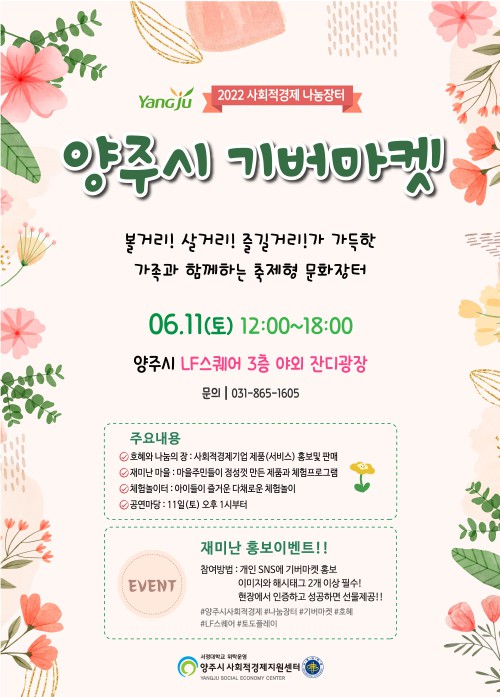 ¾çÁֽûçȸÀû°æÁ¦Áö¿ø¼¾ÅÍ(¼¾ÅÍÀå ¿°ÀÏ¿)°¡ ¿À´Â 6¿ù 11ÀÏ LF½ºÄù¾î ¾çÁÖÁ¡¿¡¼ »çȸÀû °æÁ¦±â¾÷ÀÇ ÆÇ·Î°³Ã´°ú »çȸÀû °¡Ä¡¿¡ ´ëÇÑ ½Ã¹Î ÀνÄÁ¦°í¸¦ À§ÇØ ‘2022³â ¾çÁֽà »çȸÀû°æÁ¦ ³ª´®ÀåÅÍ’¸¦ °³ÃÖÇÑ´Ù.