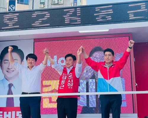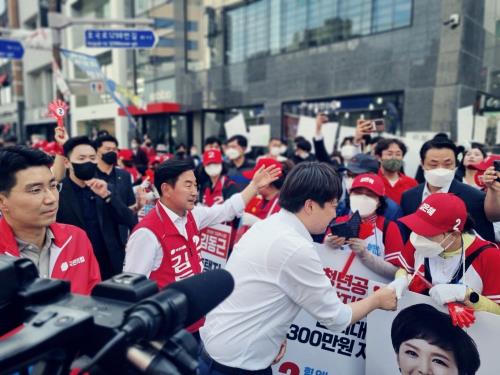 ÀÌÁؼ® ´ëÇ¥¿Í ±èµ¿±Ù È帴 À̳¯ ÇÔ²² Çູ·Î¸¦ °ÉÀ¸¸ç ½Ã¹Îµé¿¡°Ô ÁöÁö¸¦ È£¼ÒÇß´Ù.