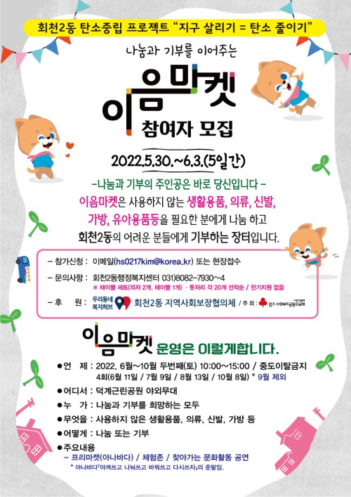 ¶ÇÇÑ È¸Ãµ2µ¿ ź¼Ò Á߸³ ÇÁ·ÎÁ§Æ®‘Áö±¸ »ì¸®±â=ź¼Ò ÁÙÀÌ±â’¿Í ÇÔ²²ÇÏ´Â À̹ø Çà»ç¿¡´Â ÇÁ¸®¸¶ÄÏ, ¸ñ°ø¿¹, ¾ÆÀ̽ºÆÑÀ¸·Î ¹æÇâÁ¦¸¸µé±â, ÀÚÈ»ó&°¡Á· ¾×ÀÚ ²Ù¹Ì±â µîÀÇ Ã¼ÇèÁ¸°ú, ã¾Æ°¡´Â ¹®ÈȰµ¿ °ø¿¬, ȸÈÀÛǰÀü½Ã, Æ÷ÅäÁ¸ µî ´Ù¾çÇÑ º¼°Å¸®¿Í Áñ±æ °Å¸®¸¦ Á¦°øÇÒ ¿¹Á¤ÀÌ´Ù.