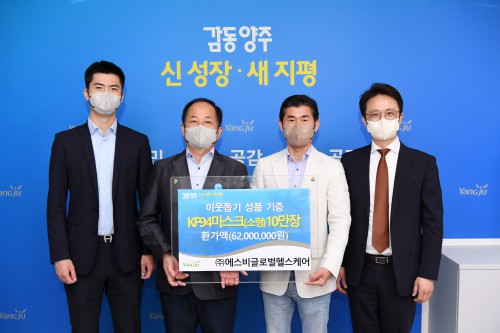 ¾çÁÖ½Ã(¾çÁÖ½ÃÀå ±ÇÇÑ´ëÇà ±èÁ¾¼®)´Â 31ÀÏ ¢ß¿¡½ººñ±Û·Î¹úÇコÄɾî(ȸÀå ÀÌ»óºÀ)¿¡¼ ½ÃûÀ» ¹æ¹®ÇØ Àú¼ÒµæÃþ ¾Æµ¿À» µ½°íÀÚ KF-94 ¾ÆÀ̹ٳª¸® ¼ÒÇü¸¶½ºÅ© 10¸¸ÀåÀ» Àü´ÞÇß´Ù°í ¹àÇû´Ù.