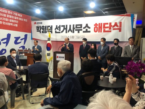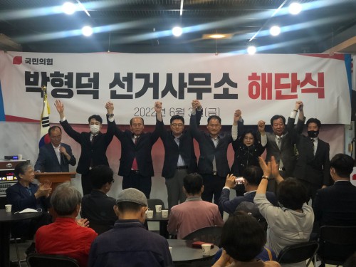 Áö³ 6.1 Áö¹æ¼±°Å¿¡¼ ±¹¹ÎÀÇÈû ¼Ò¼ÓÀ¸·Î µ¿µÎõ½ÃÀå¿¡ ÀÔÈĺ¸ÇØ ´ç¼±ÀÇ ¿µ±¤À» °Å¸ÓÁå ¹ÚÇü´ö µ¿µÎõ½ÃÀå ´ç¼±ÀÚÀÇ ¼±°Å´ëÃ¥º»ºÎ ÇØ´Ü½ÄÀÌ 3ÀÏ ¿ÀÈÄ µ¿µÎõ½Ã ¼Û³»µ¿ ¼±°Å»ç¹«¼Ò¿¡¼ °³ÃֵƴÙ.