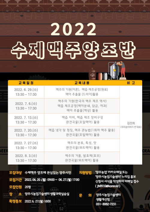 À̹ø ±³À°Àº ‘¿ì¸®¼úÀ̾߱⠿¬’±èÁøÈñ ´ëÇ¥°¡ °»ç¸¦ ¸Ã¾Æ ¸ÆÁÖÀÇ ±â¿ø, ¸ÆÁóÀÇ Á¦Á¶°øÁ¤, ¸ÆÁÖÀÇ ºÐ·ù¿Í ¸À µîÀÇ À̷б³À°°ú ¸Æ¾ÆÃßÃâ¹°, ¿ÏÀü °î¹° µîÀ» Ȱ¿ëÇÑ ¼öÁ¦¸ÆÁÖ Á¦Á¶ ½Ç½ÀÀ» ÁøÇàÇÒ ¿¹Á¤ÀÌ´Ù.