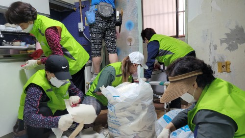 À̹ø Ȱµ¿¿¡´Â ¾çÁÖ1µ¿ ÇùÀÇü À§¿ø°ú ¸í¿¹»çȸº¹Áö°ø¹«¿ø µîÀÌ Âü¼®ÇØ ´ë»óÀÚ°¡ ÄèÀûÇÑ È¯°æ¿¡¼ Áö³¾ ¼ö ÀÖµµ·Ï ¿À¿°µÈ º®Áö¸¦ ¶â¾î³» ±³Ã¼Çϰí Áý¾È ³» Á¤¸®Á¤µ·À» Áö¿øÇß´Ù.
