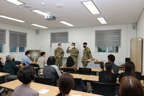 Áö³ 6¿ù 7ÀÏ °³°½Ä¿¡ Âü¼®Çß´ø ¹Ì2»ç´Ü 210Æ÷º´¿©´ÜÀå(Germann, Wade)Àº “ÇÑ·¹Ì ¿µ¾î¸¶À»ÀÇ ¼ö°»ýµéÀÌ ¿µ¾îÈ¸È »Ó¸¸ ¾Æ´Ï¶ó ´Ù¾çÇÑ ¶æÀ¸·Î ÇØ¼®µÇ´Â ¿µ¾î´Ü¾îÀÇ ¾Æ¸§´Ù¿òµµ ÇÔ²² ¹è¿ï ¼ö ÀÖ°Ô µÇ±â¸¦ ¹Ù¶ó°í ¶ÇÇÑ ÀÌ ¼ö¾÷¿¡ Âü¿©Çϰí ÀÖ´Â ¹Ì±ºµéµµ ¼ö°»ýµé¿¡°Ô Çѱ¹ ¹®ÈÀÇ Æ¯¼ºÀ» ¹è¿ì°í ÀÌÇØÇÒ ¼ö ÀÖ´Â °è±â°¡ µÇ±â¸¦ ¹Ù¶õ´Ù”°í ¹àÇû´Ù.