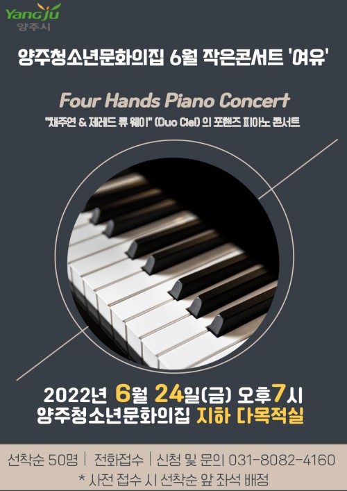 À̹ø °ø¿¬Àº I PIANO 4 HANDS ¶ó´Â ÁÖÁ¦·Î ‘Á¦·¹µå ·ù ¿þÀÌ’¿Í ‘äÁÖ¿¬’µÎ ¸íÀÇ ÇǾƴϽºÆ®°¡ ÇÑ ´ëÀÇ ÇǾƳ븦 ¿¬ÁÖÇÏ´Â Æ÷ÇÚÁî(four-hands) ÇǾƳë ÄܼƮ¿Í ±èÁø¼ö ¾çÁÖ½ÃÀ½¾ÇÇùȸÀåÀÇ ÇØ¼³À» µéÀ» ¼ö ÀÖµµ·Ï ±¸¼ºµÆ´Ù.