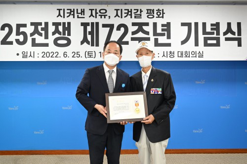 ¾çÁÖ½Ã(½ÃÀå ±ÇÇÑ´ëÇà ±èÁ¾¼®)´Â Áö³ 25ÀÏ ½Ãû ´ëȸÀǽǿ¡¼ 6.·25 ÀüÀïÀÌ ³²±ä ¿ª»çÀû ±³ÈÆÀ» µÇ»õ±â°í È£±¹¿µ·É°ú ÂüÀü¿ë»çÀÇ ¼þ°íÇÑ Á¤½ÅÀ» ±â¸®´Â 6·25ÀüÀï Á¦72Áֳ⠱â³ä½ÄÀ» °³ÃÖÇß´Ù.