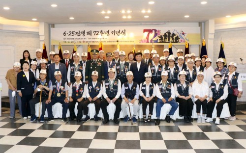 À̾î ÃÖ¿ë´ö µ¿µÎõ½ÃÀåÀº ±â³ä»ç¸¦ ÅëÇØ “6·25ÀüÀï Á¦72ÁÖ³âÀ» ¸Â¾Æ 6·25ÀüÀï ÂüÀüÀ¯°øÀÚµéÀÇ °øÈÆ¿¡ ´Ù½Ã Çѹø °¨»çµå¸®¸ç, ÀüÀïÀÇ ±³ÈÆÀ» ´Ù½Ã »ý°¢ÇÏ°Ô ÇÏ´Â ¶æ±íÀº ÀÚ¸® ¸¶·Ã¿¡ ´õ¿í °¨»çµå¸°´Ù. ÀÌÁ¦ ¿¬·ÎÇϽŠ6·25ÀüÀï ÂüÀüÀ¯°øÀڵ鲲¼ ÀüÀïÀÇ »óÈç¿¡¼ ¹þ¾î³ª ¿À·¡¿À·¡ Æò¾ÈÇÏ°í °Ç°ÇÏ°Ô Áö³»½Ã±æ ±â¿øµå¸°´Ù”°í ¸»Çß´Ù.
