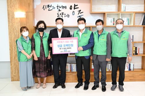 ¾çÁÖ½Ã(½ÃÀå °¼öÇö)´Â Áö³ 6ÀÏ (»ç)¾çÁֽûõ¸¶À»Áöȸ(ȸÀå ±è¿ëÃá)¿Í ¾çÁֽûõ¸¶À»Á÷Àå·°øÀåÇùÀÇȸ(ȸÀå ¿À¼ö¿µ) µîÀÌ ¾çÁÖ½ÃûÀ» ¹æ¹®ÇØ Àú¼ÒµæÃþÀ» µ½±â À§ÇÑ ¼º±Ý 500¸¸¿øÀ» ±âºÎÇß´Ù°í ¹àÇû´Ù.