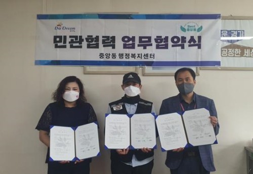 À̳¯ ¿ÀÀü ÁøÇàµÈ Çù¾à½Ä¿¡´Â ¼¼ ±â°üÀÇ ´ëÇ¥¿Í °ü°èÀÚ°¡ Âü¼®ÇÏ¿´°í, Áß¾Óµ¿ ÇàÁ¤º¹Áö¼¾ÅÍ¿Í ÇÔ²² º¹Áö»ç°¢Áö´ë ¹ß±¼ ¹× ¹Î·°ü ÀÚ¿ø ¹°Ç° ¹è¼Û Áö¿ø¿¡ °üÇÏ¿© »óÈ£ Çù·ÂÇϱâ·Î ÇÕÀÇÇÏ¿´´Ù.