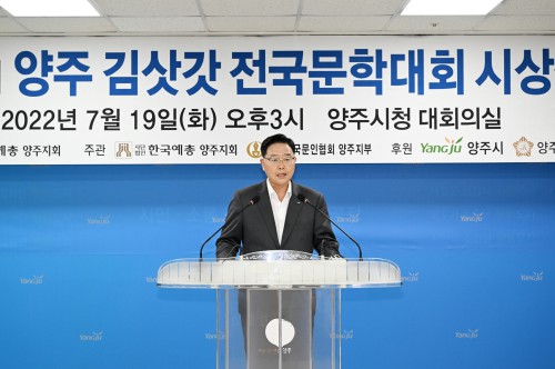 °¼öÇö ¾çÁÖ½ÃÀåÀº “¹®Çаú ¿¹¼úÀÇ °íÀå ¾çÁֽÿ¡¼ ¿¸° ±è»ñ°« Àü±¹¹®Çдëȸ¿¡ °ü½ÉÀ» °®°í Âü¿©ÇØÁØ Âü°¡ÀÚ ¿©·¯ºÐ¿¡°Ô Áø½ÉÀ¸·Î °¨»çÀÇ ¸»¾¸µå¸°´Ù”¸ç “¿ì¸®³ª¶ó ´ëÇ¥ ¹®Çдëȸ·Î °Åµì³ª°í ÀÖ´Â ±è»ñ°« ¹®Çдëȸ¿¡¼ ÀÔ»óÇÑ ¼ö»óÀÚµéÀÇ È°¹ßÇÑ ¹®ÇÐȰµ¿À» ÀÀ¿øÇϸç Çѱ¹¹®ÇÐÀÇ Å« ¸ÆÀ» À̾îÁÖ´Â ÀÛ°¡·Î ¼ºÀåÇÏ±æ ±â¿øÇÑ´Ù”°í ¹àÇû´Ù.
