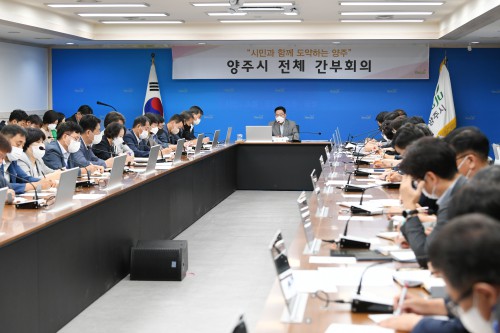 °¼öÇö ¾çÁÖ½ÃÀåÀº 20ÀÏ ¿ÀÀü ½Ãû »óȲ½Ç¿¡¼ ½Ç·±¹·¼ÒÀå, °úÀå, À¾¸éµ¿Àå µî °£ºÎ°ø¹«¿øÀÌ Âü¼®ÇÑ Àüü °£ºÎȸÀǸ¦ ¿°í ÁÖ¿ä ½ÃÁ¤ Çö¾ÈÀ» ³íÀÇÇß´Ù.