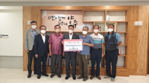 ¾çÁÖ½Ã(½ÃÀå °¼öÇö)´Â Áö³ 25ÀÏ ¾çÁֽýҿ¬±¸È¸(ȸÀå ¹é¿õÇö)¿¡¼ ¼Ò¿ÜµÈ ÀÌ¿ôµé¿¡°Ô »ç¶ûÀÇ ¼Õ±æ°ú ³ª´®À» ÇÔ²²ÇϰíÀÚ ¾çÁÖ½Ò(10kg) 20Æ÷¸¦ ±âŹÇß´Ù°í ¹àÇû´Ù.
