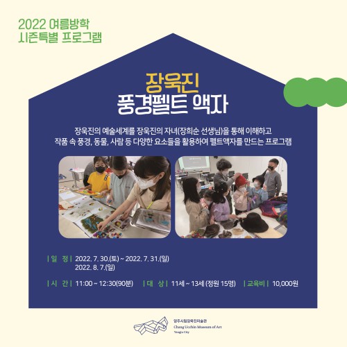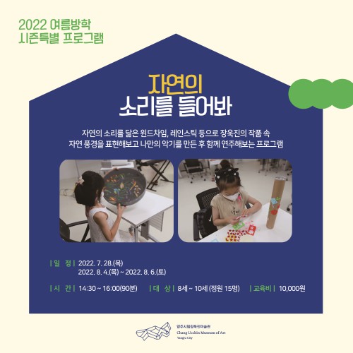 ¾çÁֽø³Àå¿íÁø¹Ì¼ú°üÀº ¿À´Â 28ÀϺÎÅÍ 8¿ù 7ÀϱîÁö À¯¾Æ¿Í ¾î¸°ÀÌ(5¼¼~13¼¼)¸¦ ´ë»óÀ¸·Î ‘2022 ¿©¸§¹æÇнÃÁð Æ¯º° ±³À°ÇÁ·Î±×·¥’À» ¿î¿µÇÑ´Ù.
