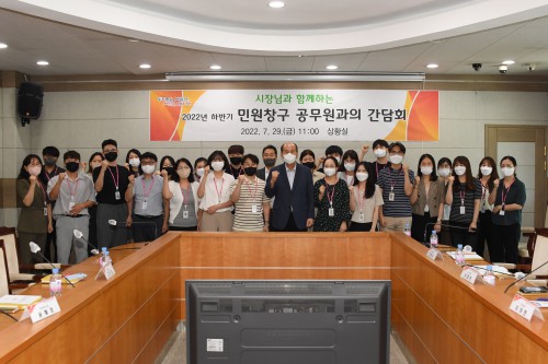 µ¿µÎõ½Ã(½ÃÀå ¹ÚÇü´ö)´Â 7¿ù 29ÀÏ ½Ãû »óȲ½Ç¿¡¼ ¹Î¿øÃ¢±¸ °ø¹«¿øÀ» ´ë»óÀ¸·Î '½ÃÀå°ú ÇÔ²²ÇÏ´Â 2022³â ÇϹݱ⠹οøÃ¢±¸ °ø¹«¿ø °£´ãȸ'¸¦ °³ÃÖÇß´Ù.