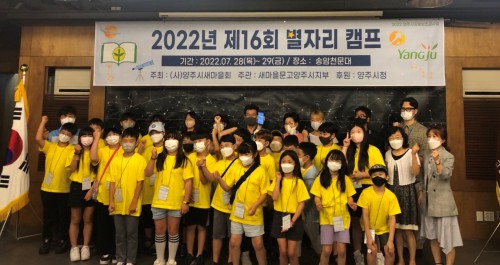 »õ¸¶À»¹®°í¾çÁÖ½ÃÁöºÎ(ȸÀå ¿À°æ¿Á)´Â 7¿ù 28~29ÀÏ 1¹Ú 2Àϰ£ ¾çÁֽà ¼Û¾Ïõ¹®´ë¿¡¼ ‘Á¦16ȸ ¿©¸§¹æÇÐ º°ÀÚ¸® Ä·ÇÁ’¸¦ ¿î¿µÇß´Ù.