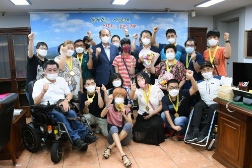 µ¿µÎõ½Ã Àå¾ÖÀÎüÀ°È¸(ȸÀå ¹ÚÇü´ö)´Â Áö³ 8ÀÏ ‘Á¦7ȸ °æ±âµµÁö»ç¹è Àü±¹ Àå¾ÖÀÎűǵµ´ëȸ’¿¡ ÃâÀüÇÑ ¼±¼öµé°ú ÀÓ¿øÁø µî 15¸íÀ» ½ÃÀå½Ç·Î ÃÊûÇÏ¿© ¸Þ´ÞÀ» ¼ö¿©ÇÏ°í ¼±¼öµéÀ» °Ý·ÁÇß´Ù°í ¹àÇû´Ù.